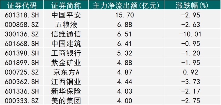 62只个股今日主力净流出额超过1亿元,以中国平安(601318.SH)、五粮液(000858.SZ)、信维通信(300136.SZ)净流出额最甚。中国平安今日主力净流出额高达15.70亿元。近两个交易日,该股主力净流出额累计达27亿元。值得一提的是,信维通信今日主力净流出额攀升至6.51亿元,在被主力资金抛弃之时,该股1月以来股价跌幅29.07%。