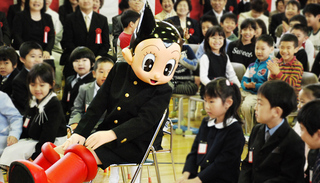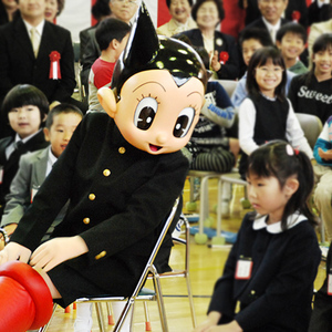 手冢Production的总部是一栋深蓝色的小楼,通过墙体上贴着的阿童木头像,你很容易就能在一片住宅楼里找到他们。手冢Production的著作权事业局局长,清水义裕从“虫制作”时期就已经为手冢工作,现在已经为手冢的作品工作了45年。