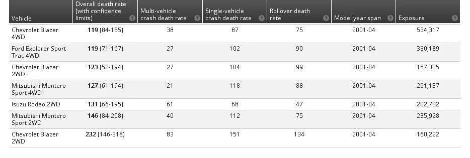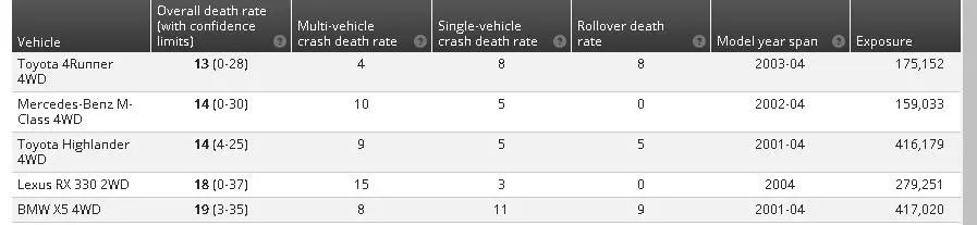 对,这些车型在远古的2001-2004仍然是非承载车身,但却拥有这个级别里很高的死亡率,尤其是在单车和侧翻事故中死亡率很高。