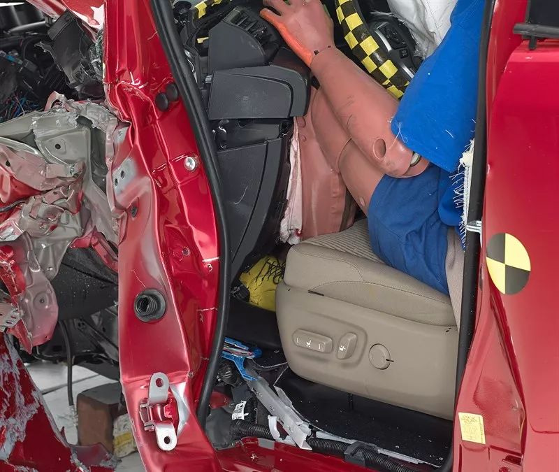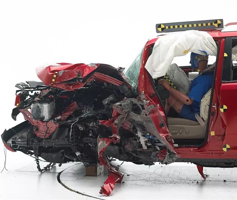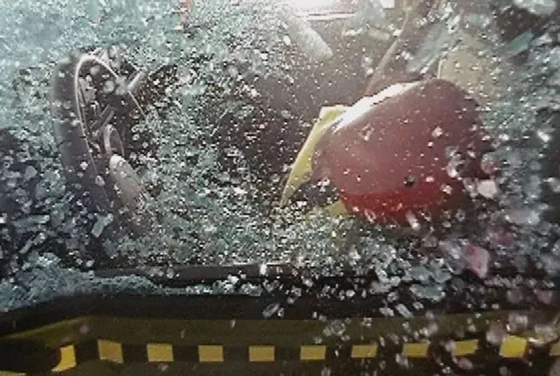 比如这款非承载SUV,是比较有代表性的车型,在IIHS的侧面碰撞测试中表现很一般,驾驶员用头撞碎了车门玻璃。