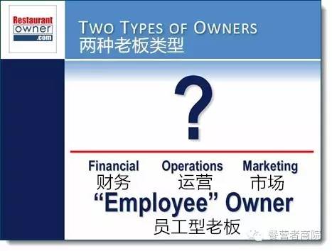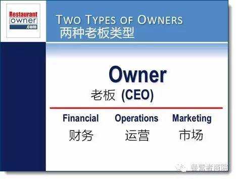 CEO型的老板监督和指导运营、财务及市场工作,但不会做具体的日常工作,日常工作是雇员要做的事情。这样的安排不仅对老板有利,对整个餐厅的生意也有帮助,老板可以将更多精力从日常运作中抽离开来,把时间放在和日常运营同样重要的战略高度,去规划并开展那些对餐厅的未来有帮助的事情。