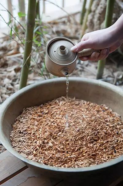 和茶道一样,先用开水冲洗一遍茶具,再放入茶叶,茶叶也需要先冲洗一遍之后,才能使用,等到第二遍茶浸泡好以后,就可以把茶水均匀倒入装有檀木的盆中,最后再将茶叶一起洒入盆中。