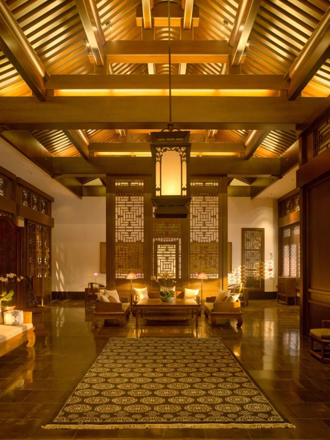颐和安缦的每一块金砖同样是由姑苏城远道而来,皇室的贵气感呼之欲出,“京城风味”十足。再细细瞧来,家俬,玄关,灯具,地毯……无一不是完美沿袭古韵之风。
