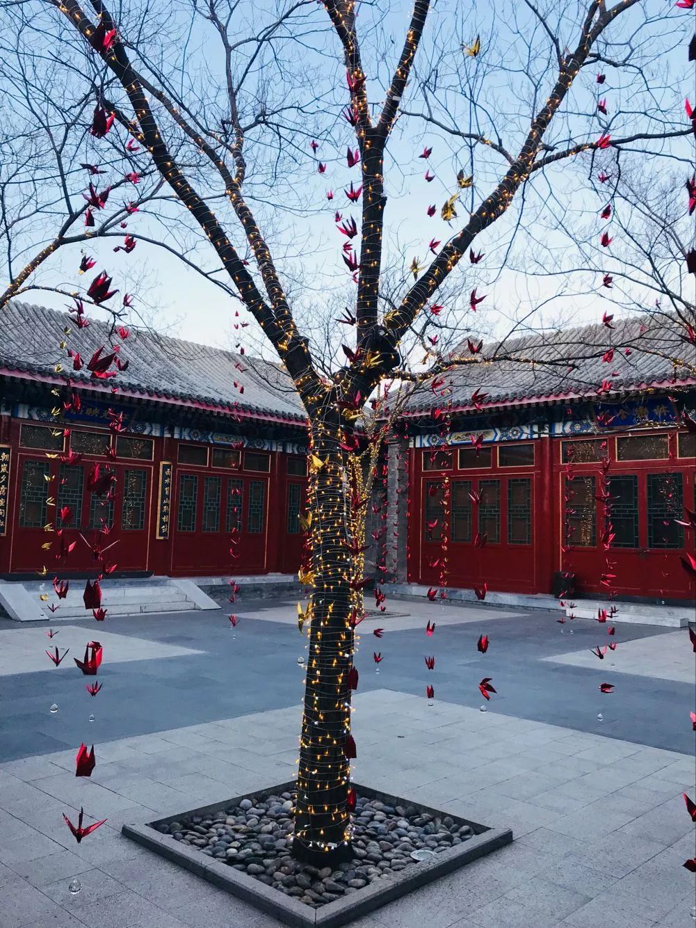 ▲颐和安缦文化馆前院,还保留着唯美的圣诞千纸鹤装饰