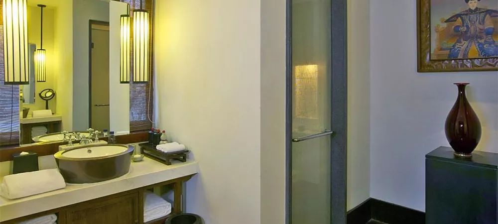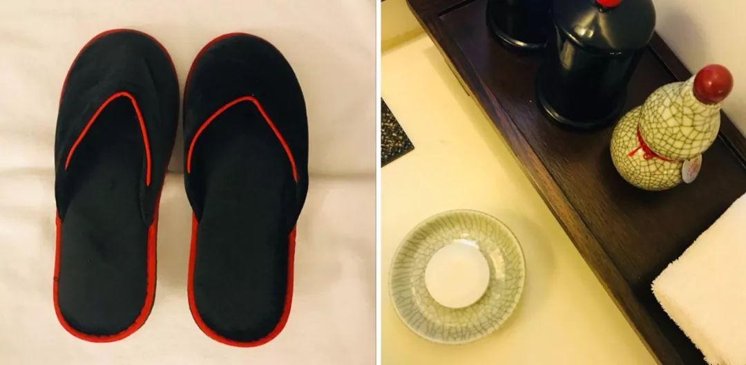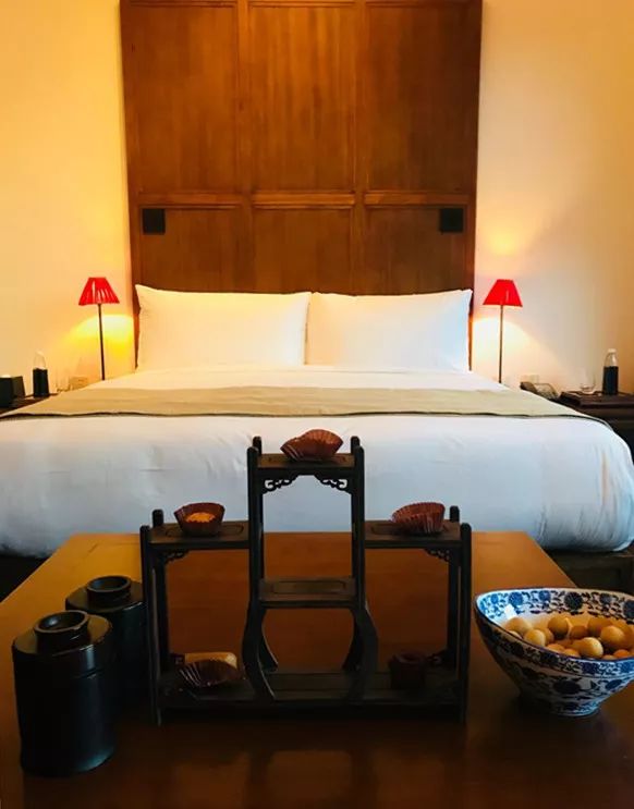碧竹帘,木屏风,家居物件都是一派古朴雅致,设计师实在深谙如今的都市贵族们早已厌倦了各种繁复、花哨的设计。但是安缦又是非常细致独特的,从满地光亮的金砖,到钥匙、“请勿打扰”门牌、茶具、欢迎点心的装置器物、备品容器、红色镶边拖鞋……每一个细节都极力做到应景又精致。