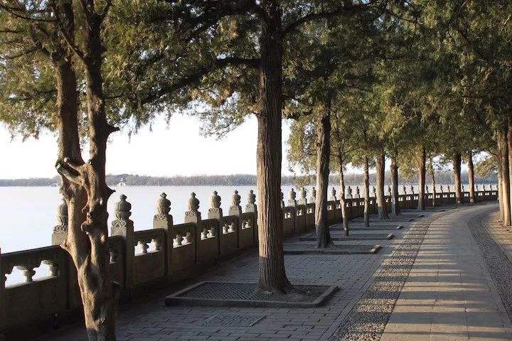 昆明湖已经结冰,很多人都滑冰去了,而我只把这一行,当作一场散步消遣,冷归冷,却也是难得的清静开阔。