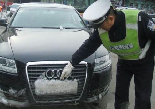 近期全国大部分地区下起暴雪,某些司机就打起雪和泥的主意,比如下图,车其它部位都擦得非常干净,只有车牌的地方被雪或泥盖得严严实实。司机这么做,明显是想借助雪、泥作为遮挡号牌的利器。交警早已经看穿了这些,会按故意遮挡机动车号牌扣分罚款。