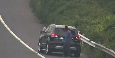 两个人手挽手、肩并肩一起挡车牌,车辆在身后缓慢前行。当然,最终逃脱不了高速占用应急车道罚款200元记6分,故意遮挡机动车号牌罚款200元记12分的命运。