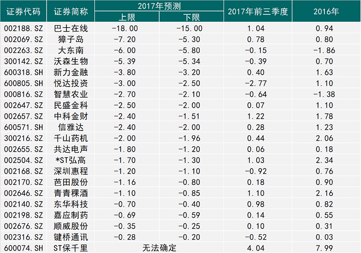 獐子岛(002069.SZ)的扇贝又“跑了”,该公司发出业绩下修公告,预测净利润金额由最高盈利1.1亿元调整至最大亏损7.2亿元;巴士在线(002188.SZ)子公司董事长失联了,该公司只得计提商誉减值,预测净利润金额一夜间从最高盈利2.1亿元跌落至最大亏损18亿元;ST保千里(600074.SH)也“任性”了,原实际控制人侵占公司利益事件影响不减,该公司无法确定亏损金额;贾跃亭至今未归,留下了深陷泥淖的乐视网(300104.SZ)又发出去年净利润亏逾百亿的公告;国际油价回升了,但油服龙头企业石化油服依然无可奈何,抛出了预亏106亿元的重磅炸弹······
