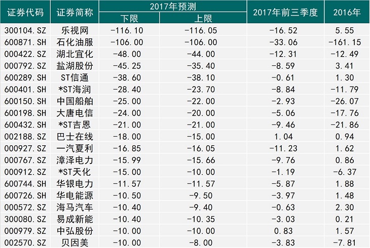 其次,乐视网等19家上市公司预计亏逾10亿元,埋下了一颗又一颗巨亏“地雷”。