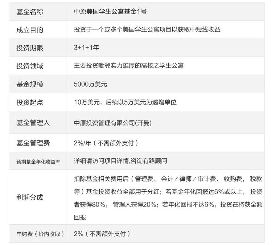 项目推荐 | 中原美国学生公寓基金1号