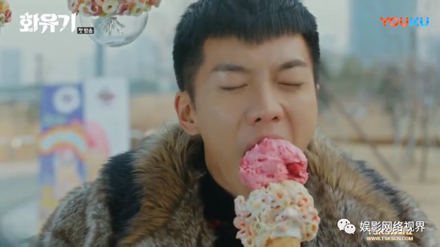 孙悟空由去年退伍归来的李胜基饰演,他此次为了出演孙悟空还积极减肥健身,多了几分少年感。在人设方面,一些细节的设定让悟空这个角色非常丰满:由于怕冷,孙悟空整天披着大貂袄子招摇过市;而体内有真火,又导致他特别爱吃冰激凌。咬一口粉色的冰激凌,感觉特别少女心呀!
