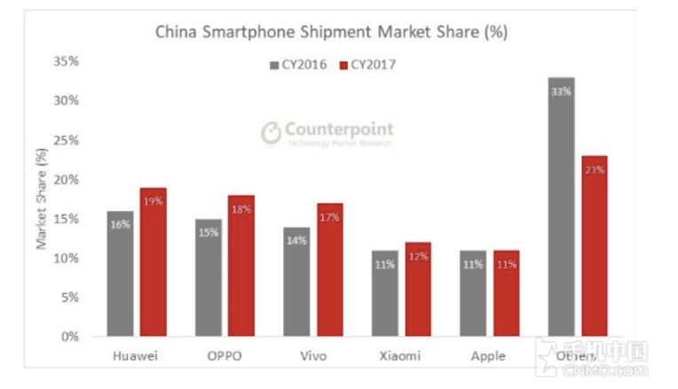 结果已经很清晰,小米在2017年的“复苏”,主要发生在印度等海外市场,在中国市场基本和2016年持平,远没有到绝地反杀的地步。
