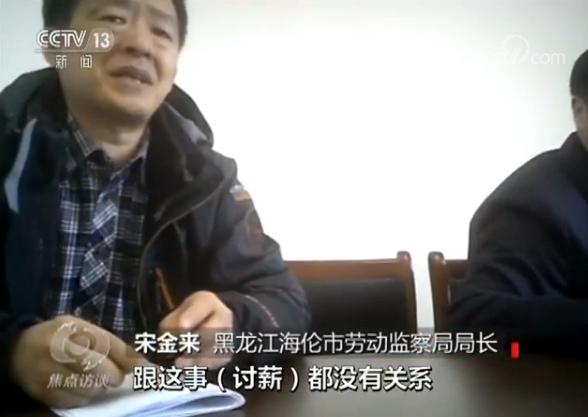 又是一方说付清了,一方说没付清,甲乙双方的相互扯皮让农民工的工资没了着落。在这种情况下,按说,启动保障金就能解决农民工工资问题,不过在讨薪过程中,农民工们拿到了一份内部材料,上面显示,项目本应按工程造价3%收取的工资保障金却被免收,这份材料当时市里是认可的。那这个项目的保障金到底交没交呢?海伦市劳动监察局局长宋金来说:“(保障金)和(讨薪)这事没关系,这事我也不知道。”