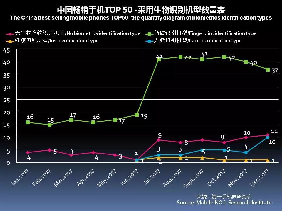 (备注:由于多个机型会同时拥有指纹、虹膜和人脸识别,故机型数量会有重叠)