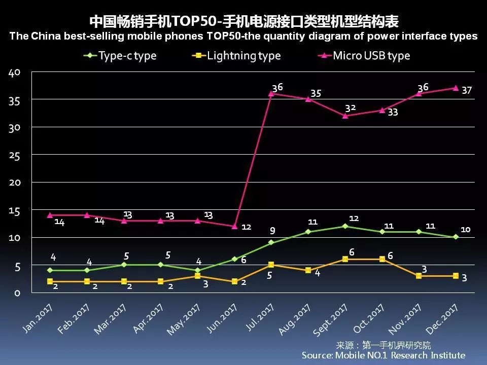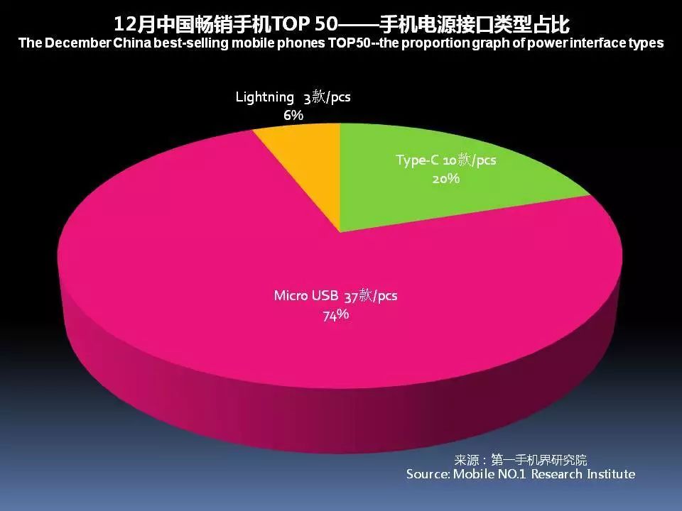 12月中国畅销手机TOP 50中,采用Type-c接口的机型已达到10款。