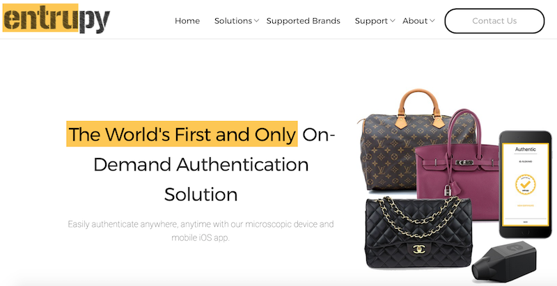 Entrupy 的用户提供商品图像后将立即得到鉴定结果。如果商品被鉴定为真,Entrupy 会为其颁发认证证书,并承诺如果该商品被证明是仿冒的,Entrupy 将为客户报销购买费用。