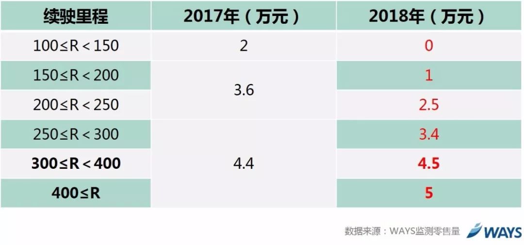 能耗(百公里耗电)的规定与2017年完全不同。能耗须高于2017年现行政策的10%。如果达到高于10%的标准,则根据不同的档次将补贴金额乘以不同的补贴调整系数(分三档0.5、1、1.1)。
