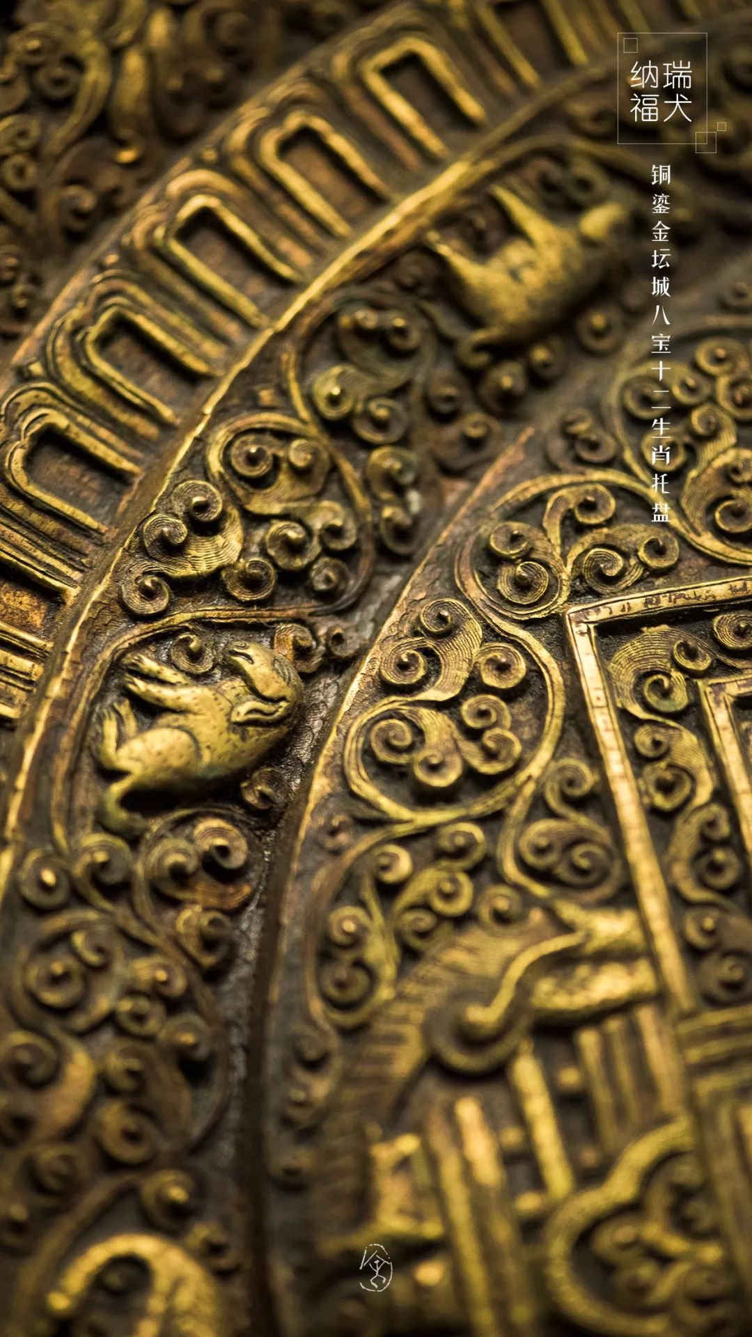 铜鎏金坛城八宝十二生肖托盘