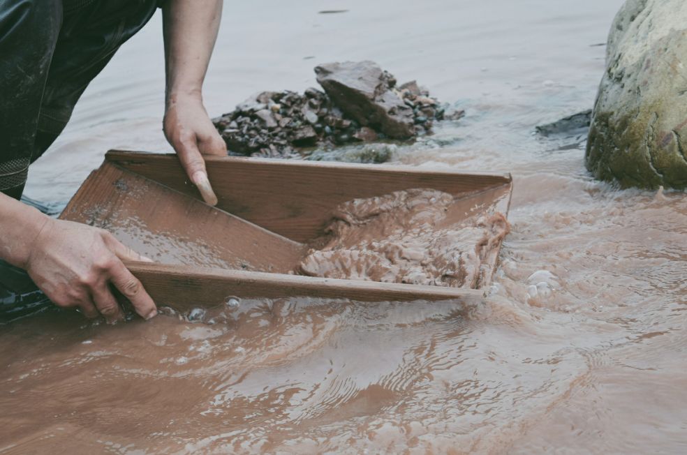 淘洗泥沙获取金矿的工艺
