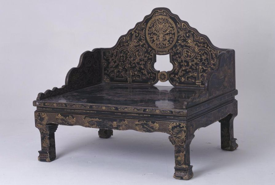 故宫藏清黑漆描金山水纹宝座
