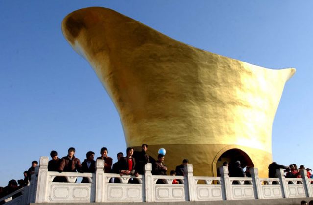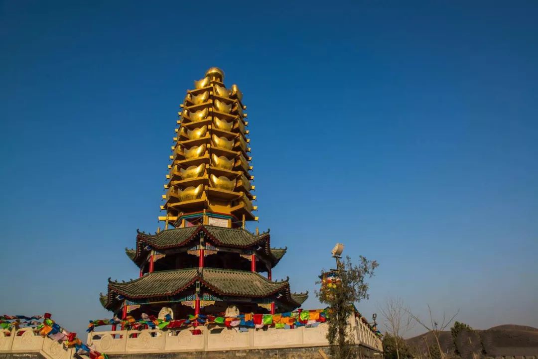 河北鹿泉灵山景区内的“元宝塔”。原名“财富塔”,因其塔身上堆满了金元宝,所以被网友戏称为“元宝塔”。塔内供奉有善财童子、赵公明、白圭、范蠡、关公、比干、龙五爷、布袋和尚八大财神。该塔曾入选2012年第三届中国十大丑陋建筑