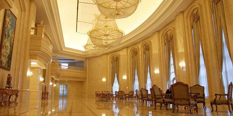 震旦国际大楼,玻璃幕墙采用金银色相间的设计,其室内为欧洲宫廷式建筑风格。值得玩味的是,金璧辉煌的欧式宫廷风却有一个很“中国”的名字——震旦:古印度对中国的称呼