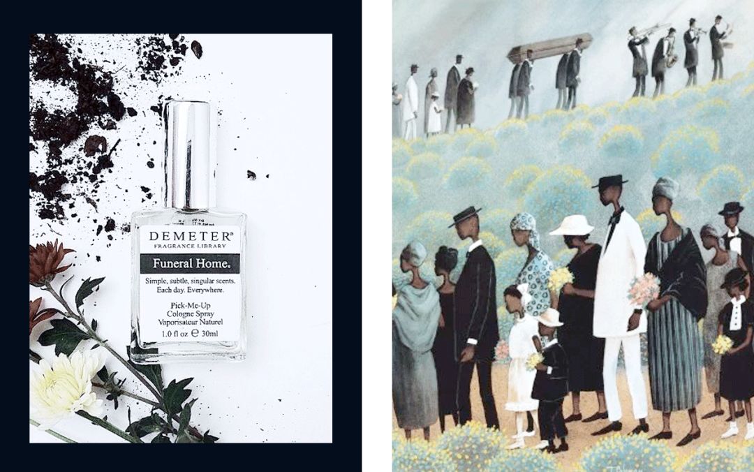 最猎奇的是这瓶“Funeral Home”,里面混合了康乃馨、唐菖蒲和白菊花,说是缥缈的香味就像和天使手牵手漫步在云间一样。