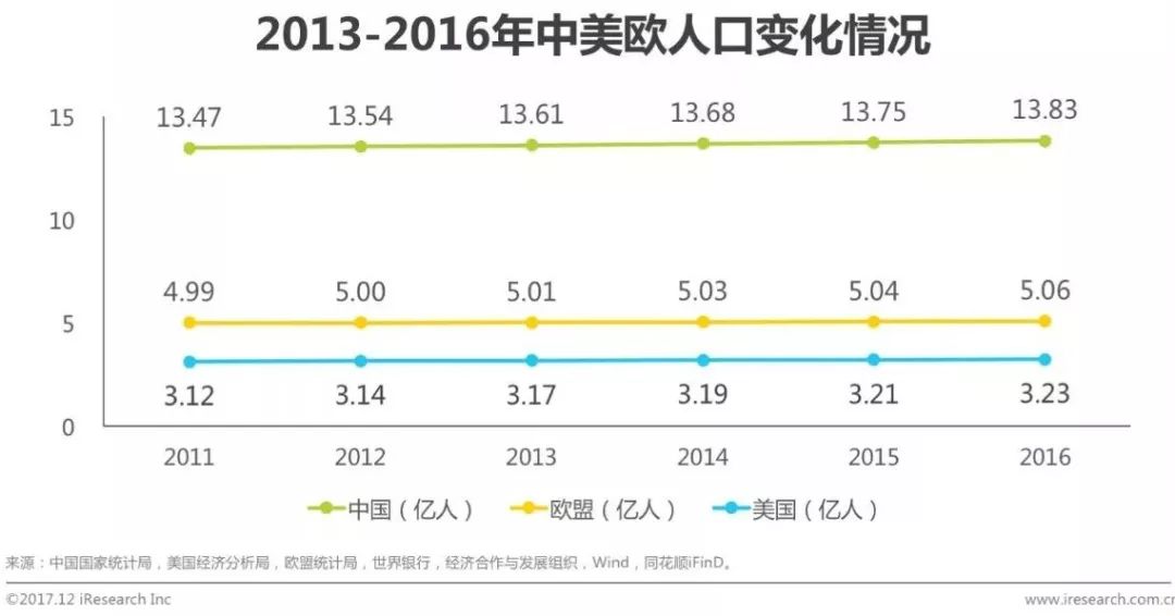 2016年,中国人口达到13.8亿人,同比增长冲高到0.59%,在二胎政策开放后,预计未来人口增速会维持在0.57%左右,中国将迎来新一轮人口红利。人口基数大是中国在全球如此独特的重要原因,也同样是因为这个原因,中国各新兴产业的发展和演变,都遵循“围绕用户需求”这一核心原则。跟居民生活息息相关的各类软硬件基础设施将得到更多的国家资源投入,包含:政策倾向、税收减免和投资倾向等等。