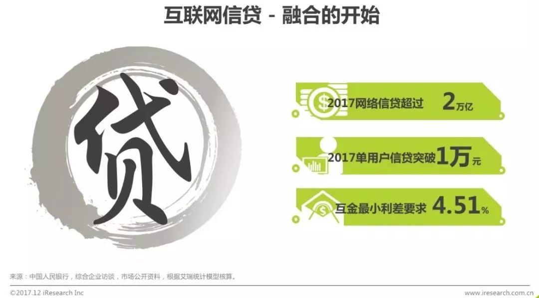 信贷是金融的核心,自2007年P2P登陆中国开始,国内的信贷就开始了漫长的线上化进程。但是碍于体制和理念的原因,中国的信贷线上化,始终停留在“电商”层面,以一种网络兜售信贷的方式试水线上信贷。这种初级又低效的方式持续了很久,然而对传统金融机构的促进却极其有限。导致2007-2017这十年间,中国的线上信贷始终停留在网络信贷的层面,互联网金融无论是非功过,至少都在探索信贷线上化的种种可能。2017年,现金贷的兴起是中国金融孕育出的“怪胎”,它既保留了传统金融的运作方法和理念,又融入了许多网络金融的技术元素,更为重要的是,现金贷在网络平台出现之后,经过历次改版升级后的电子银行产品也悄无声息的融入了现金贷的功能。至此,更加深入的信贷线上化,才算正式拉开帷幕,金融业真正进入了互联网人常说的“最好的时代”。