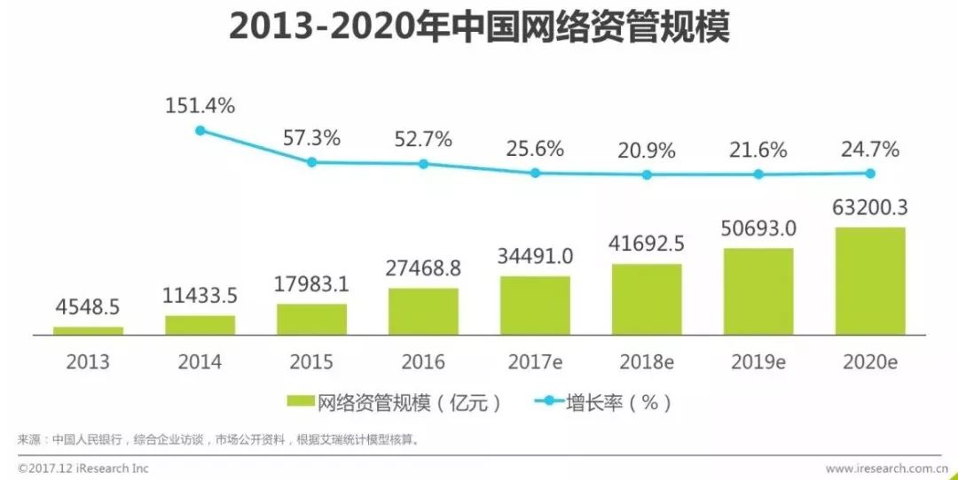 2016年和2017两年间,网络理财的发展依旧如火如荼,尤其2017年,银行间市场的利率走高,导致余额理财类产品的市场热度进一步提升,标志性的产品余额宝规模创历史新高,惊艳全球。不过整体上看,网络理财用户的人口红利消耗殆尽,症结在于余额理财模式之后,网络理财再无有影响力的创新模式出现,导致用户增速放缓,行业增长节奏与证券行业“靠天吃饭”的模式趋同。
