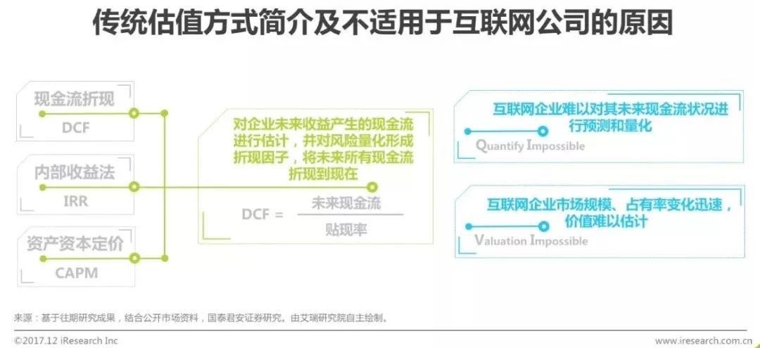 梅特卡夫定律(Metcalfe‘s Law)的核心内容是:在有n个成员的通信网络中,每个成员可以与其他成员建立n-1个关系。所以梅特卡夫认为网络的价值等于网络节点数的平方,网络的价值与联网的用户数的平方成正比。所以基于梅特卡夫定律,也证明互联网企业的价值与用户之间的正相关关系。但是艾瑞分析认为,梅特卡夫定律所衡量的是同一性质下网络的价值,而目前互联网企业业务线都比较丰富,所以在将梅特卡夫定律作为互联网企业估值原理时,需要按照不同业务线拆分企业,并将所有业务分别估值,然后汇总所有业务线上的用户价值,即可按照互联网的商业逻辑评估互联网公司的价值。