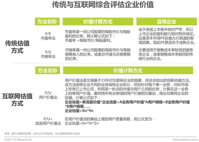 根据有效市场假设,我们认为某一行业上市公司在二级市场的即时市值代表了目前社会普遍认知中,该行业的真实价值。所以在估值过程中,只需要寻找某一时间节点下,上市公司市值剔除流量价值之后的余值,与其实际用户之间的比例关系,即可得到该行业单用户在该时点上的价值。这个方法与传统估值方法的同源性在于,二者都是寻找一个一般等价物作为估值的标尺,再衡量被估值公司拥有多少该一般等价物,进而得出被估值公司的估值区间。只不过传统估值方法选择的一般等价物是“公司每赚1元钱”,而用户价值法找的一般等价物是“每拥有一个实际用户”。