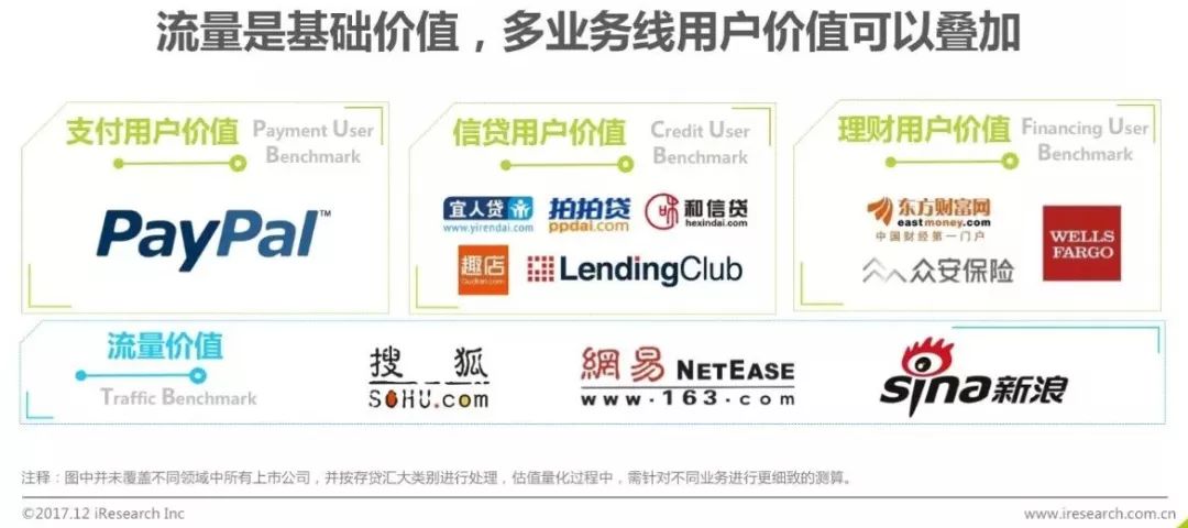 金融是严肃而骄傲的古老行业,这种特质源自于资本的聚集效应和谨慎的评价标准。所以基于这些因素,传统金融行业的商业逻辑是以资本的角度出发构建业务线,然后等待用户上门。但互联网公司有所不同,与传统企业相比,互联网企业大多处于初创期,为了掌握市场主动,包括互联网金融在内的互联网企业形成了一套独特的商业逻辑。这种商业竞争逻辑是紧跟用户需求,从用户的一个简单需求入手,向其他相关需求延伸,利用灵活的管理机制和轻业务运营的优势迅速跟进,而且正如所有互联网公司传达出的理念一样,它们的确帮助用户解决了很多需求,进而迅速扩大用户规模,在市场上形成用户垄断的格局。所以对于传统金融企业来说,其企业价值体现在资本运作能力和传统财务指标上。而对于互联网金融公司来说,用户规模和用户的质量,是评判其价值核心要素。