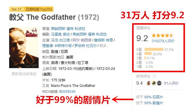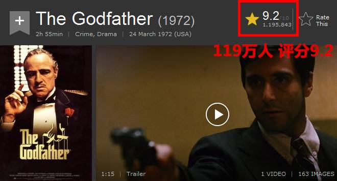 《教父》属于那种没看过都不好意思说自己是影迷的电影,因为太经典,它在各种打分网站上的分数也是高得惊人。
