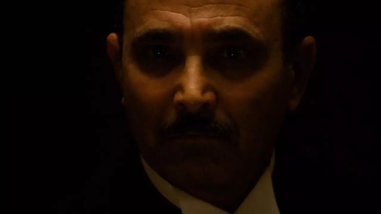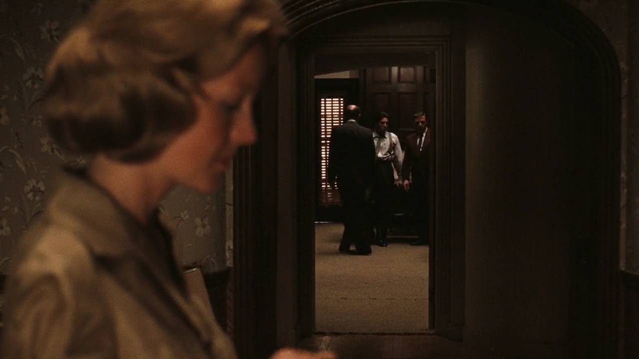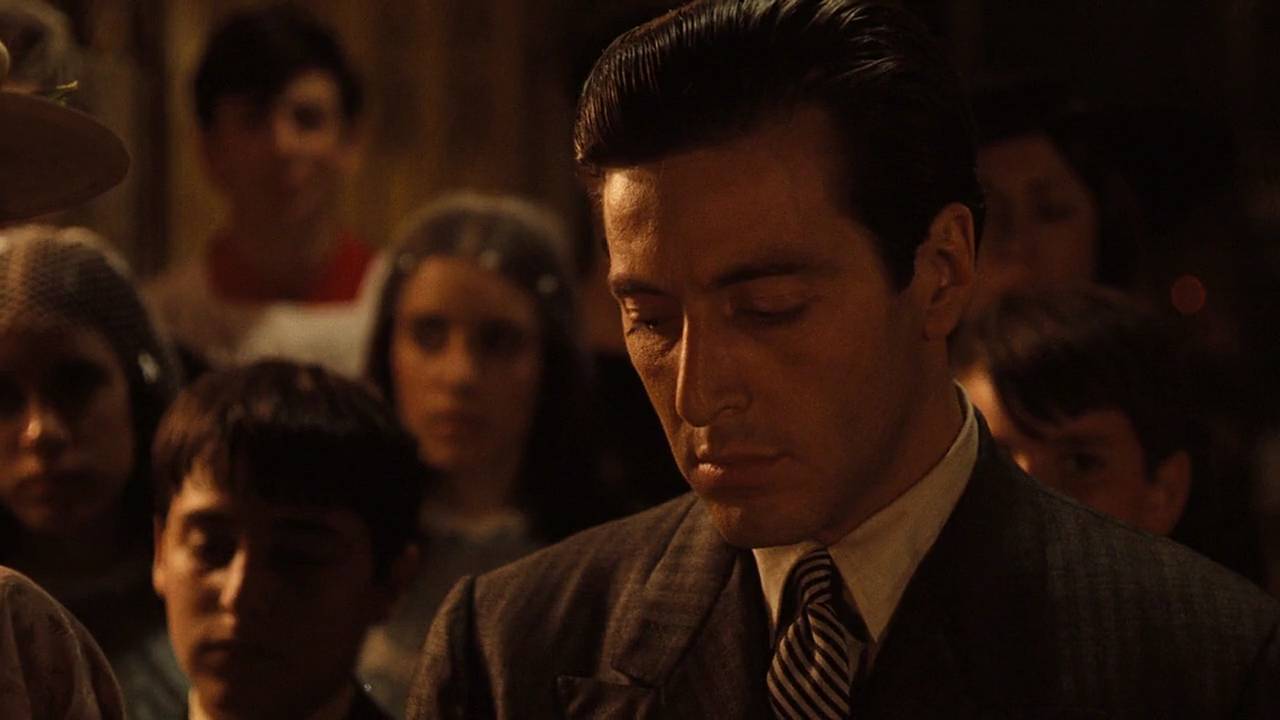 这是影片的第一个镜头,表现一个棺材店老板在恳求教父替女儿报仇。当时很少有影片以一个次要人物的特写开场,这个大胆的创意来自于科波拉。
