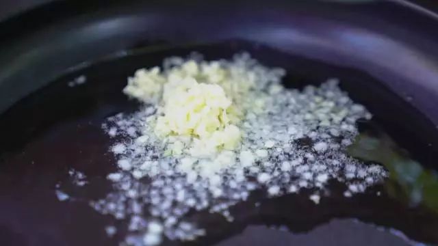 2.锅中倒油烧至三成油温,倒入一半蒜泥文火炸至金黄色;