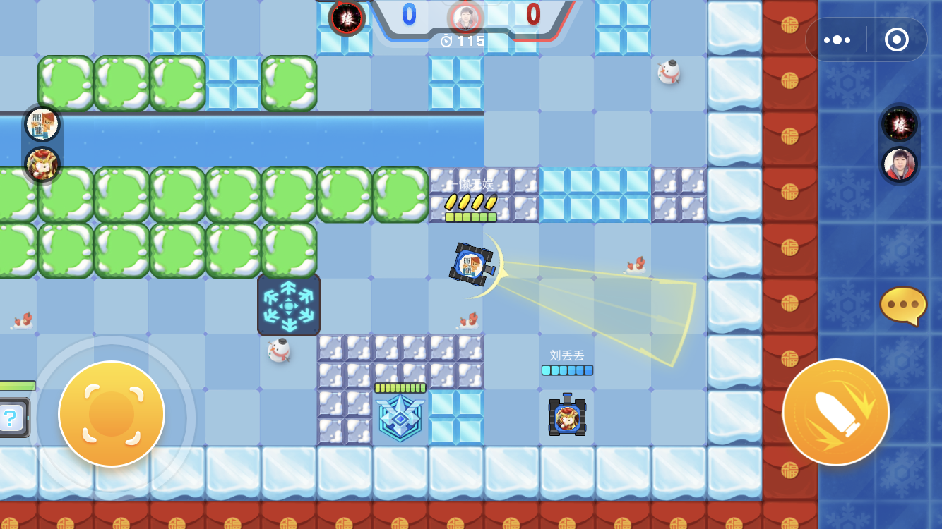 有了小游戏则完全不同了,欢乐坦克大战最多支持三对三对战,比游戏机要强了很多。把链接分享到群里,就可以呼朋唤友来战斗。玩法也并不难,和传统的坦克大战类似,有熟悉的草地、隐身、砖块,还有最重要的「老巢」。相信这熟悉的画面可以让大家迅速上手,也能找到往日的乐趣。