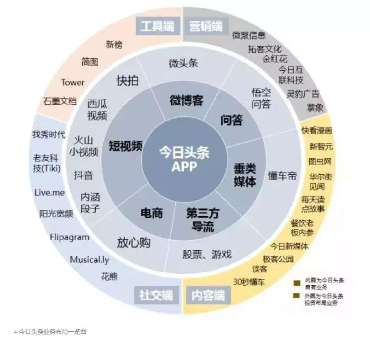 今日头条诞生至今,坚决不站队,不投靠BAT等互联网巨头,已构建强大的APP矩阵。且按照目前走势来看,今日头条现有业务体系将持/续拓展延伸,未来将涉足电商、游戏、金融等多领域,会否成为下一个互联网巨头呢?让我们拭目以待。
