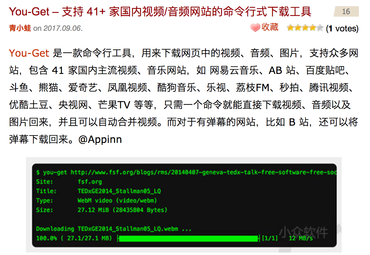 但爬虫可以通过的方法自动爬取视频、图片网站中的文件数据,包括那些需要加载广告、付费观看下载的数据。我们可以很轻松的找到一款名为“You-Get”的开源爬虫程序,用来下载视频、音频网站中的文件,也包括B站A站的弹幕。