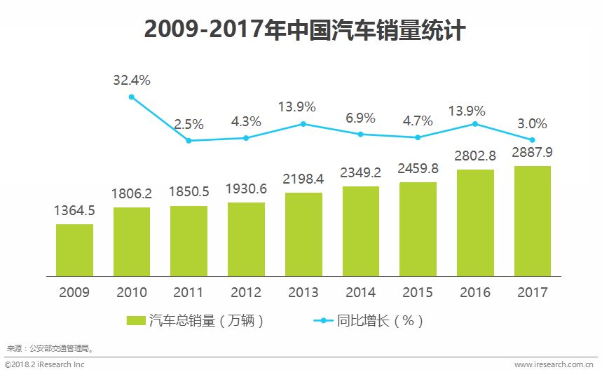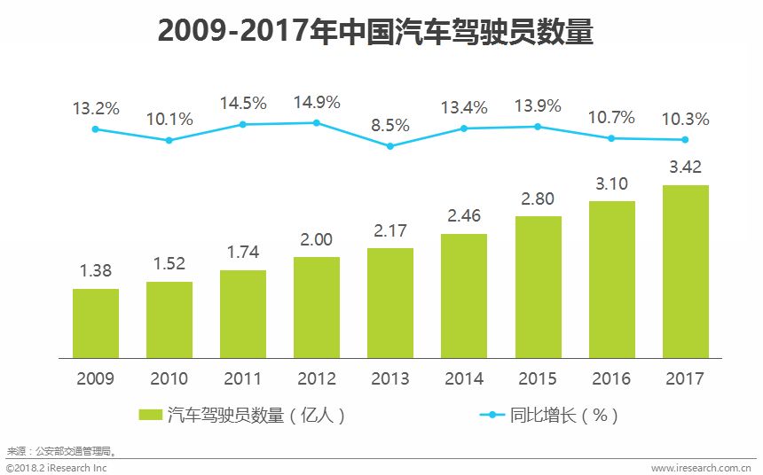 近年来,中国汽车销量增速逐渐放缓,但新车绝对销售量仍保持较高水平,2017年达到2887.9万辆。庞大的销量基数反应出市场仍有较大的需求。另一方面,中国汽车驾驶员数量依旧保持高速增长,而且市场驾考热情高涨,平均每年新增驾驶人员接近3000万人,会开车被多数人认为是必备技能之一,新增驾驶人员将会成为重要的汽车市场发展动力。