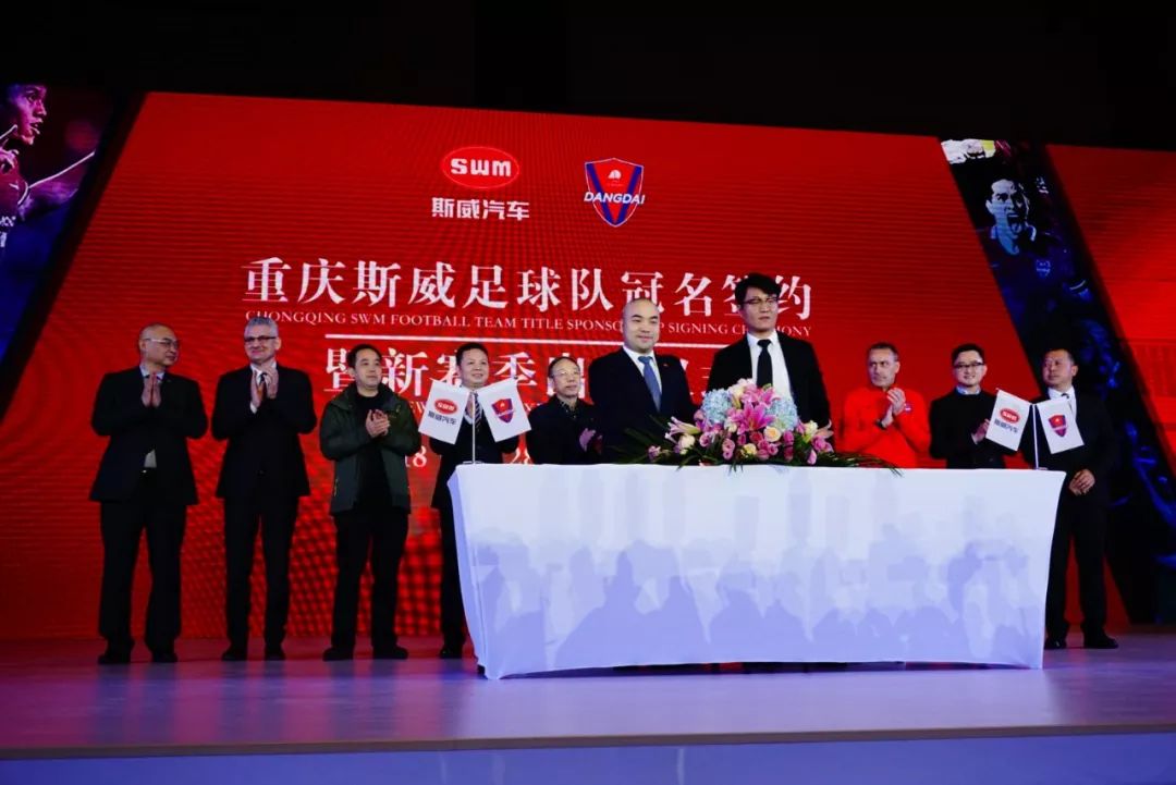 2月28日,距离新赛季中超比赛开幕还有2天,重庆足球队与新的冠名赞助商——SWM斯威汽车正式签约。