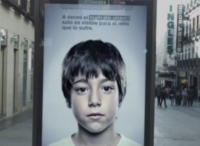 举个例子,某基金会曾经为受虐儿童制作了一个公益广告牌,这个广告牌的秘密在于,不同角度看到的成像不同。
