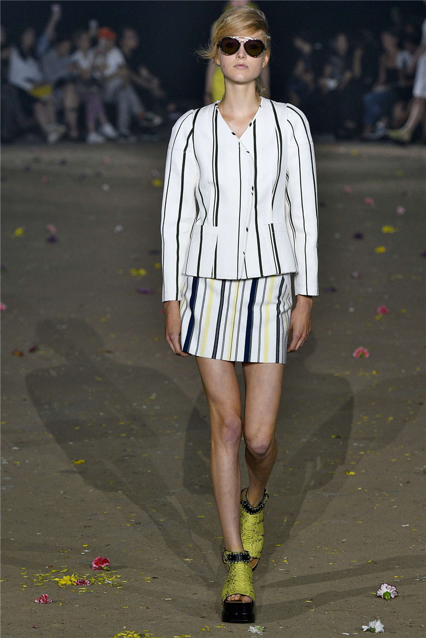 3.1 Phillip Lim则按最新的条纹搭配法则,把宽条纹的上衣与窄条纹的短裙搭配起来,视觉对比非常强烈。