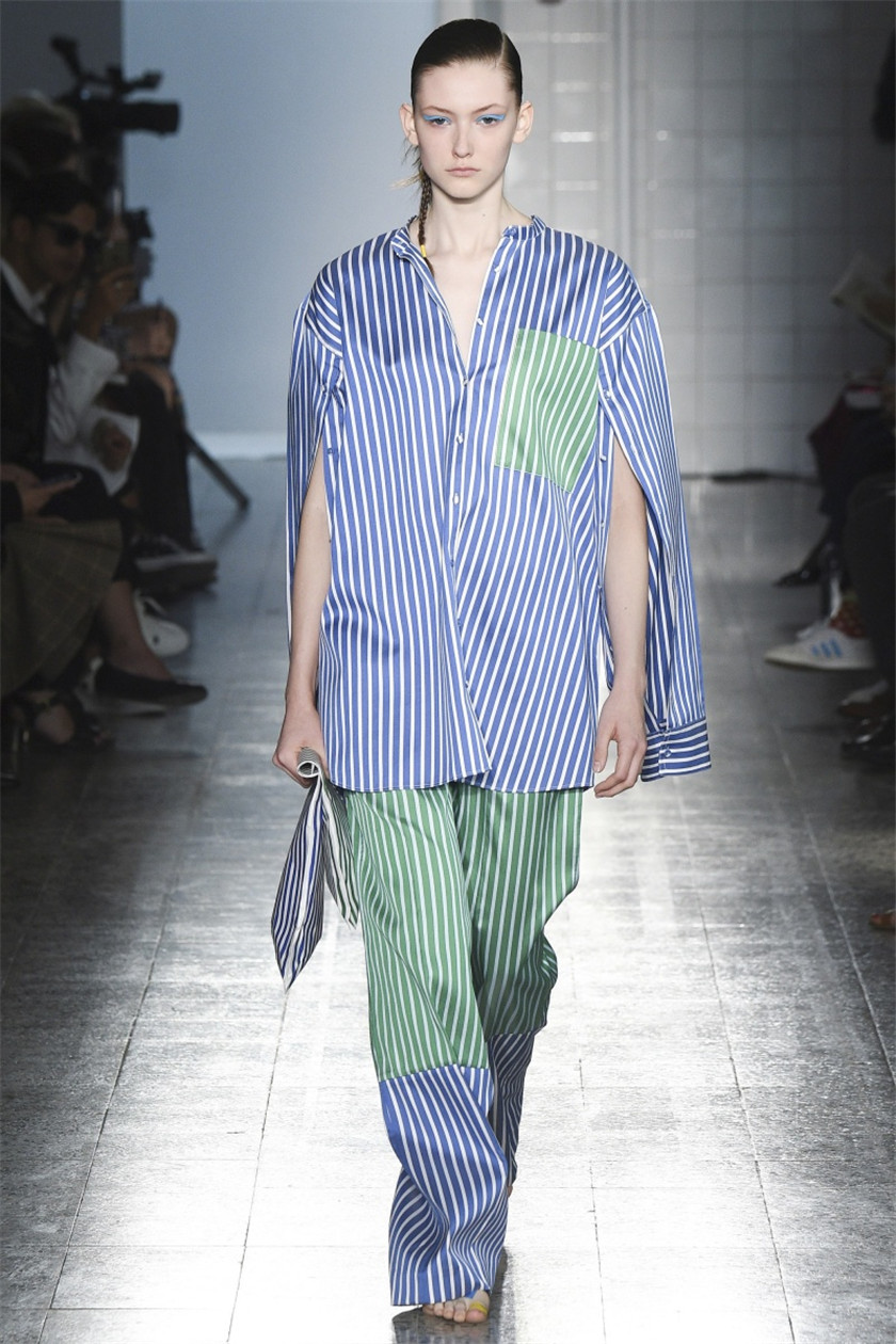Ports 1961 则选择把超大号条纹衬衫与衬衫布料的裤子组合成套装,虽然看上去让人不禁想起了医院的病号服,但是更窄的条纹设计也把人装扮的身材更加修长。