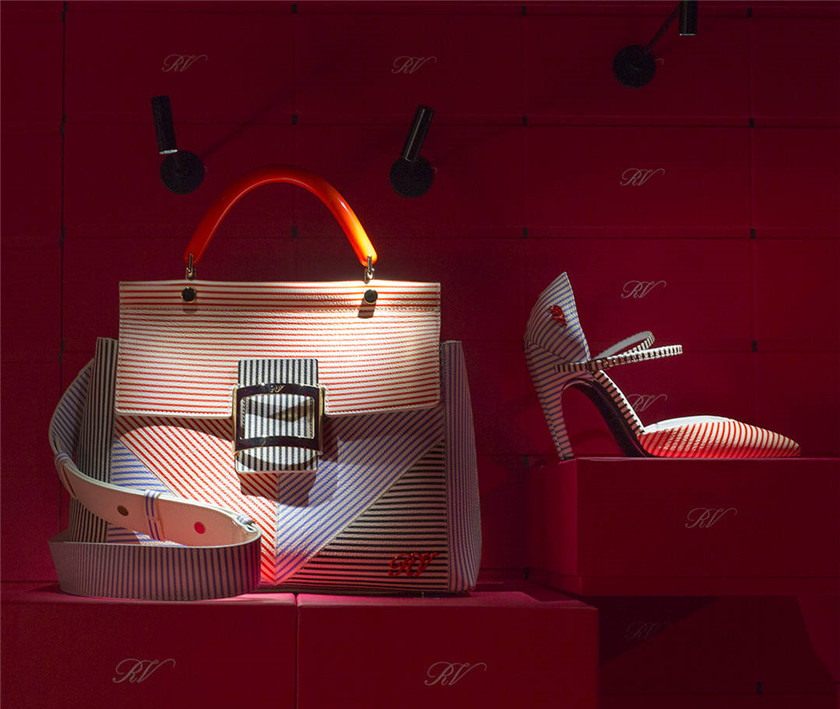 比如说,RogerVivier2018春夏系列就设计了同款条纹的手袋和包包。