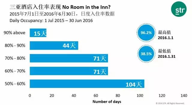 三亚酒店市场的季节性非常强,冬天一房难求,夏天入住率就非常低,整体入住率一年有三分之一的时间在60%以下,不少酒店甚至在30%以下。(如下图)这其实也是全国各旅游目的地的通病,三亚四季温差较小、气候宜人,相较国内其他四季分明的地区已好很多。这种现象的根源在于目前我国的假期设置,使得消费者即使有一定经济实力,也不见得能有时间去度假。