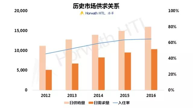 2012-2016三亚酒店供需关系,数据来源:Horwath HTL