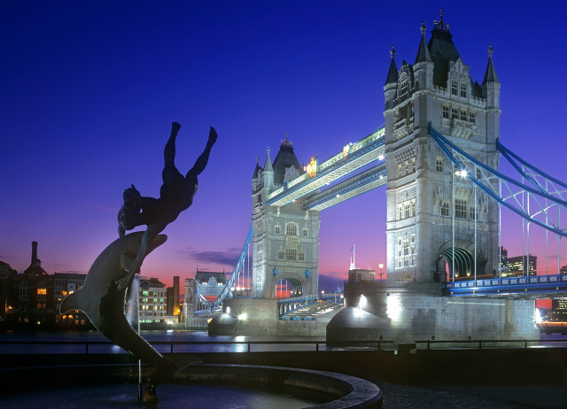 在泰晤士河的北岸,伦敦塔桥旁边,有一个英国后现代艺术家David Wynne1973年竣工的挑战平衡感杰作——海豚与少女的雕像。当夕阳西下,不少旅行者喜欢在这里留下浪漫的合影,也有许多画家沉迷于这和谐又令人心跳的视觉冲击。