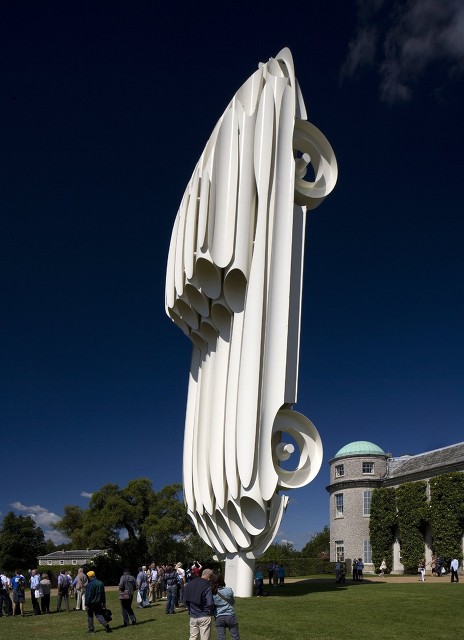 在英国古德伍德速度节上,设计师GerryJudah让一辆纯白色的巨型捷豹E-Type老爷车站在了草坪上,这样的“翻车现场”备受关注。这辆“车子”高28米重达175吨,矗立在古德伍德公园引起了路人游客的围观。